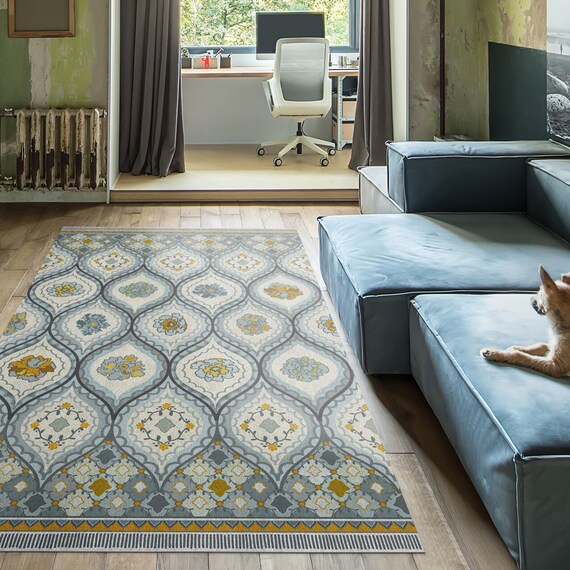 Gray And Blue Vinyl Floor Mat With Art Nouveau Design Etsy Australia
